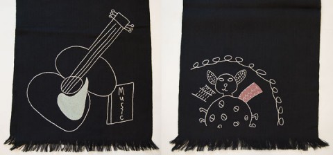 Judy Ross created these gorgeous scarves with her son Henri's 2nd grade class at the Lycee Francais in New York. The class had been studying the work of Picasso, and the children were asked to draw their own interpretation of Picasso's style. All of their drawings were sent to Judy's artisans in Kashmir and the children's line drawings were embroidered onto charcoal grey scarves.