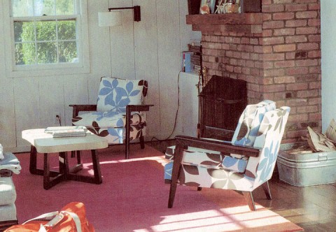 The Hamptons residence of interior designer Eve Robinson features chairs upholstered in silkscreened linen adapted from the timeless Judy Ross Textiles Fauna pattern.