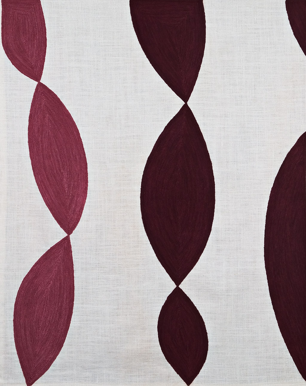 Linen fabric with hand-embroidered motifs in a fine rayon thread. Embroidered yardage can be made into bedcovers, curtain panels, or sewn to your specifications. Fabric is available in running yardage, 56 inches in width. Lead time depends on yardage.