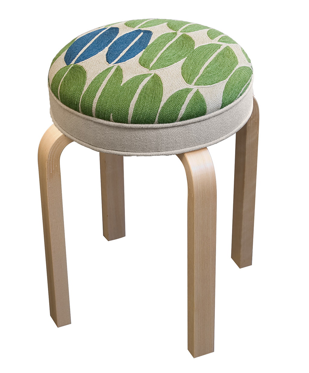 To commemorate the 75th anniversary of Finnish architect Alvar Aalto's iconic Stool 60, Judy Ross Textiles collaborated with Artek to produce a limited edition line of the stools that feature her signature chain stitch fabric designs. This stool is beautiful enough to be a museum piece but is perfectly suited for everyday use.