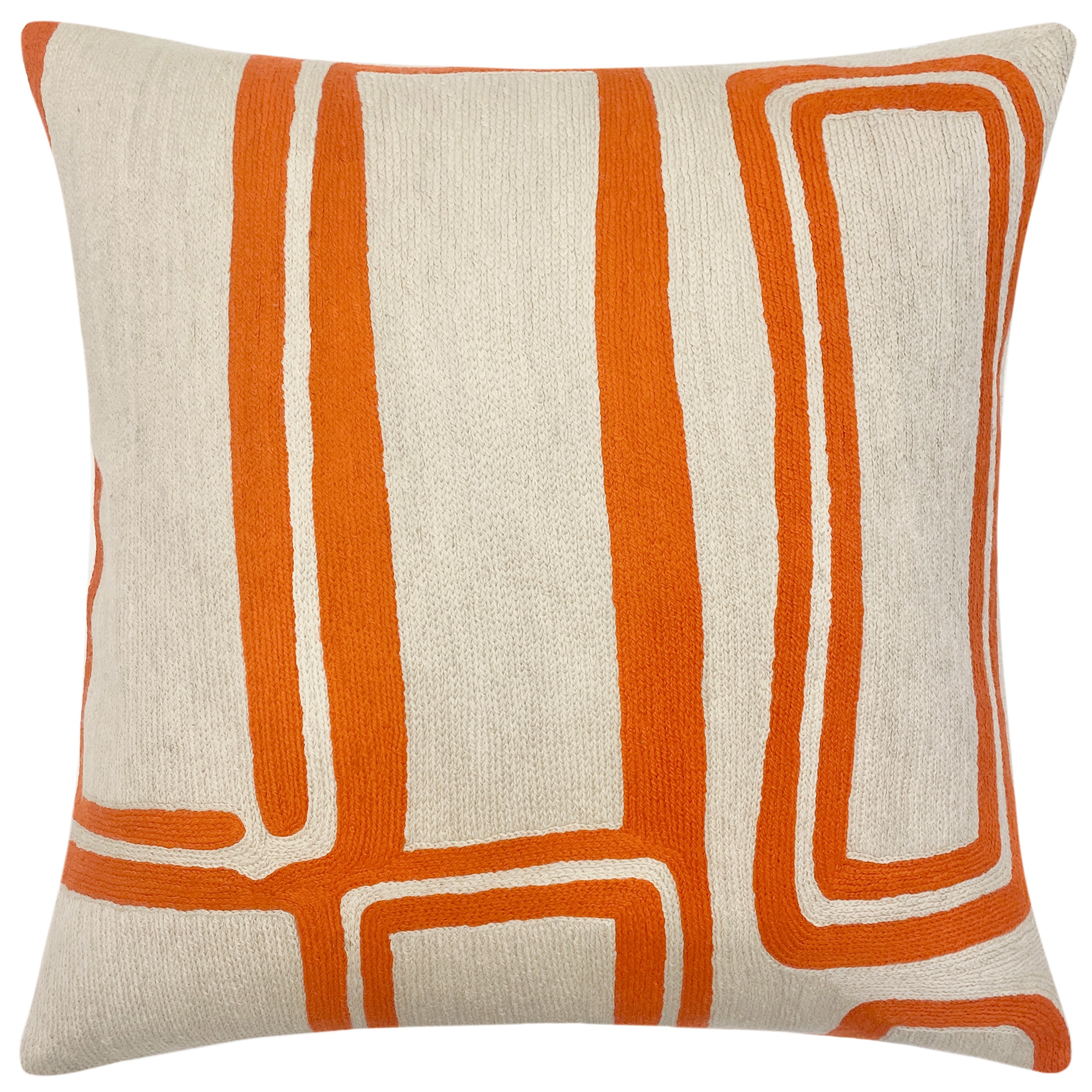 Hand embroidered by our artisans, these pillows use the finest, hand-dyed New Zealand wool, with a cotton canvas overlay backing and a 5/95 down/feather insert.