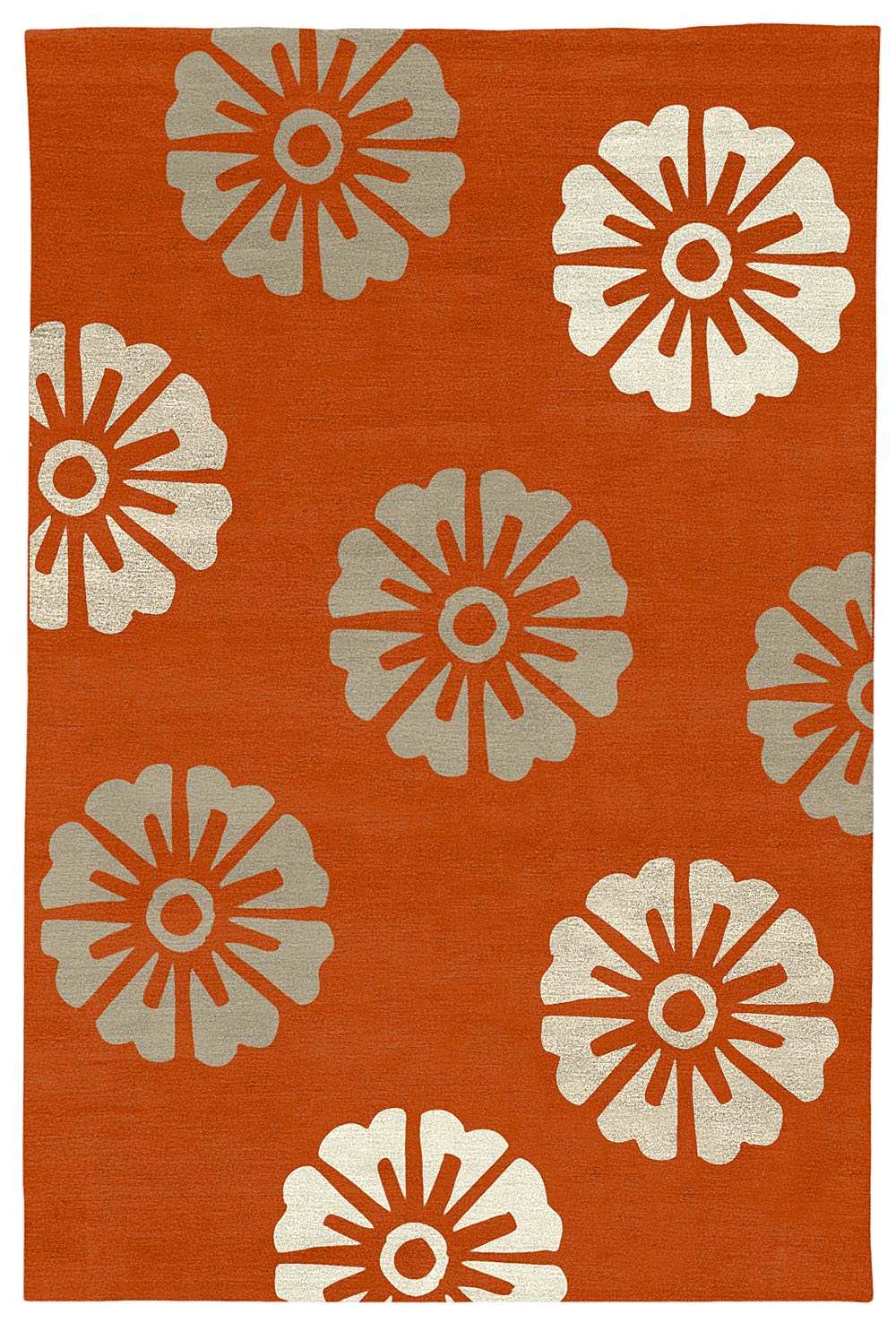 Our rugs are made to order in two different techniques: chain stitch hand embroidery or hand-knotted at 100 knots per inch, which is shown here. Click here for more information.